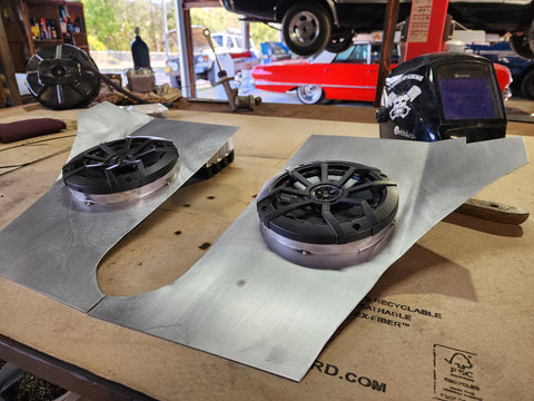 Replacement sheet metal kick panels with allocation to mount speakers for the Datsun 720 pick-up. Available to suit 4" or 6" speaker options.